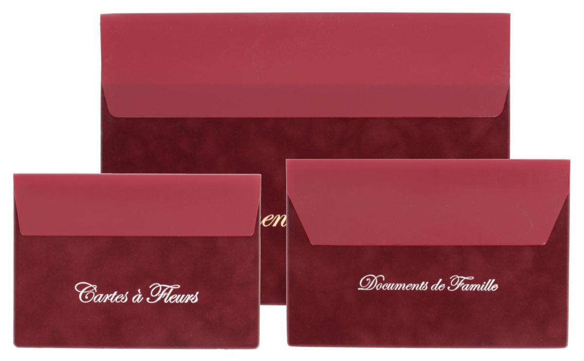 Pochettes et enveloppes de la gamme BI-MATIÈRES pour documents de famille et cartes à fleurs.